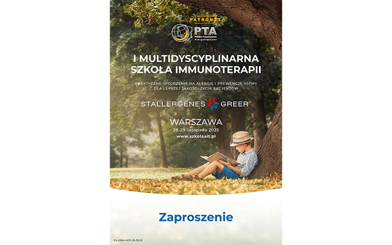 Serdecznie zapraszamy do udziału w I Multidyscyplinarnej Szkole Immunoterapii – Praktyczne Spojrzenie na Alergię i Prewencję Astmy dla Lepszej Jakości Życia Pacjentów. Konferencja odbędzie się online w dniach 28–29 listopada 2025 roku. Wydarzenie organizowane jest przez firmę Stallergenes i skierowane do członków Polskiego Towarzystwa Pneumonologii Dziecięcej.